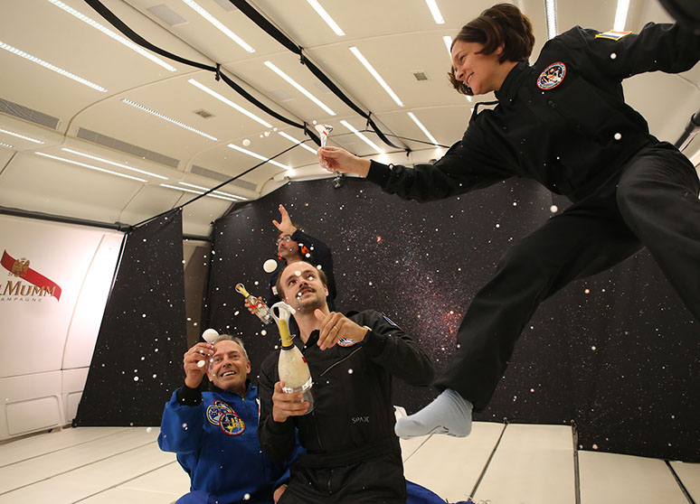 The first ever zero-gravity flight of Mumm Grand Cordon Stellar.