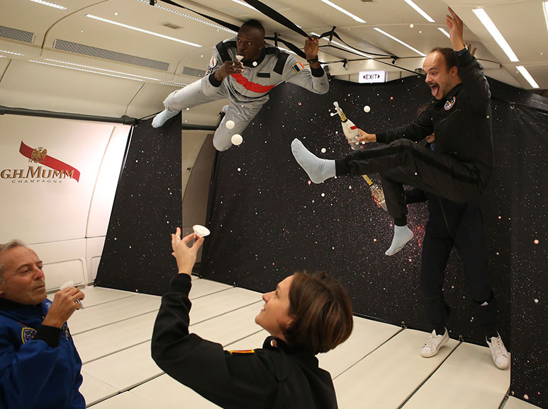 Pushing the boundaries of possibility, daring, taking on challenges and looking ahead are both what this innovation represents for Maison Mumm, and what has always driven it – just like Usain Bolt, the Maison’s C.E.O. (Chief Entertainment Officer) since 2016. Usain Bolt was of course present in Reims, alongside the Maison, for this momentous occasion. During the parabolic flight, he discovered the pleasures of champagne in zero gravity, before returning to Earth to celebrate.