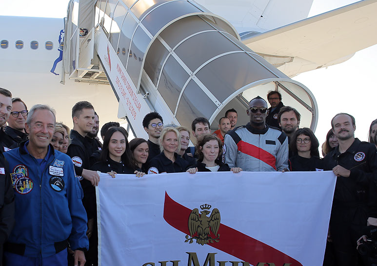 It took three years of research and experimentation to develop Mumm Grand Cordon Stellar, the first champagne designed to be tasted in space. For this world premiere, Maison Mumm symbolically chose to fly over the vineyards of Reims to present its innovation during a zero-gravity flight.